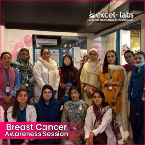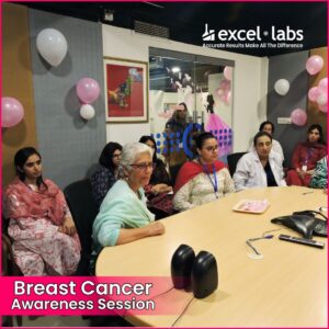 Excel Labs recently conducted an informative Breast Cancer Awareness session for our female employees, focusing on early detection, prevention, and the importance of regular screenings. Empowering women with the knowledge to take charge of their health is a priority, and this session highlighted key insights on self-exams, risk factors, and lifestyle choices for better well-being. Together, we’re fostering a proactive approach to health within our Excel Labs family.
