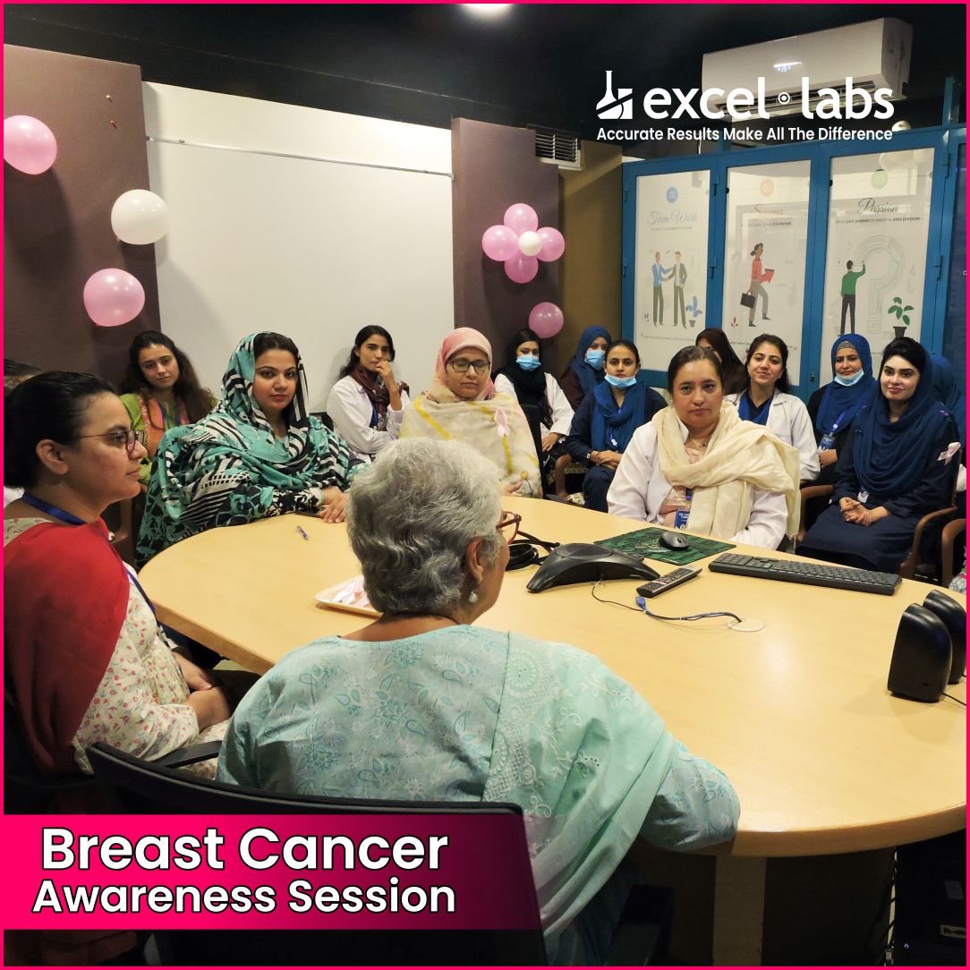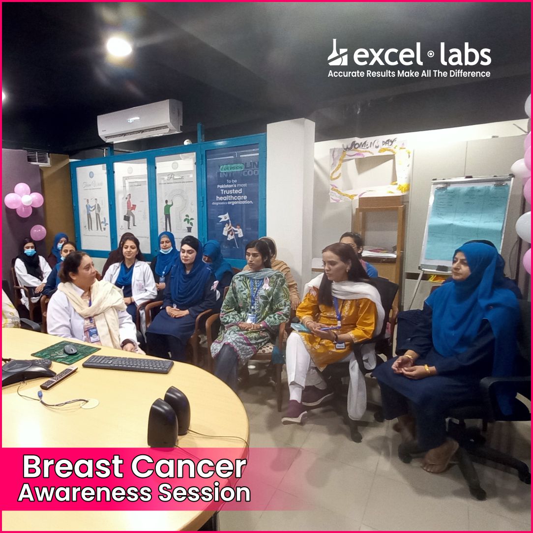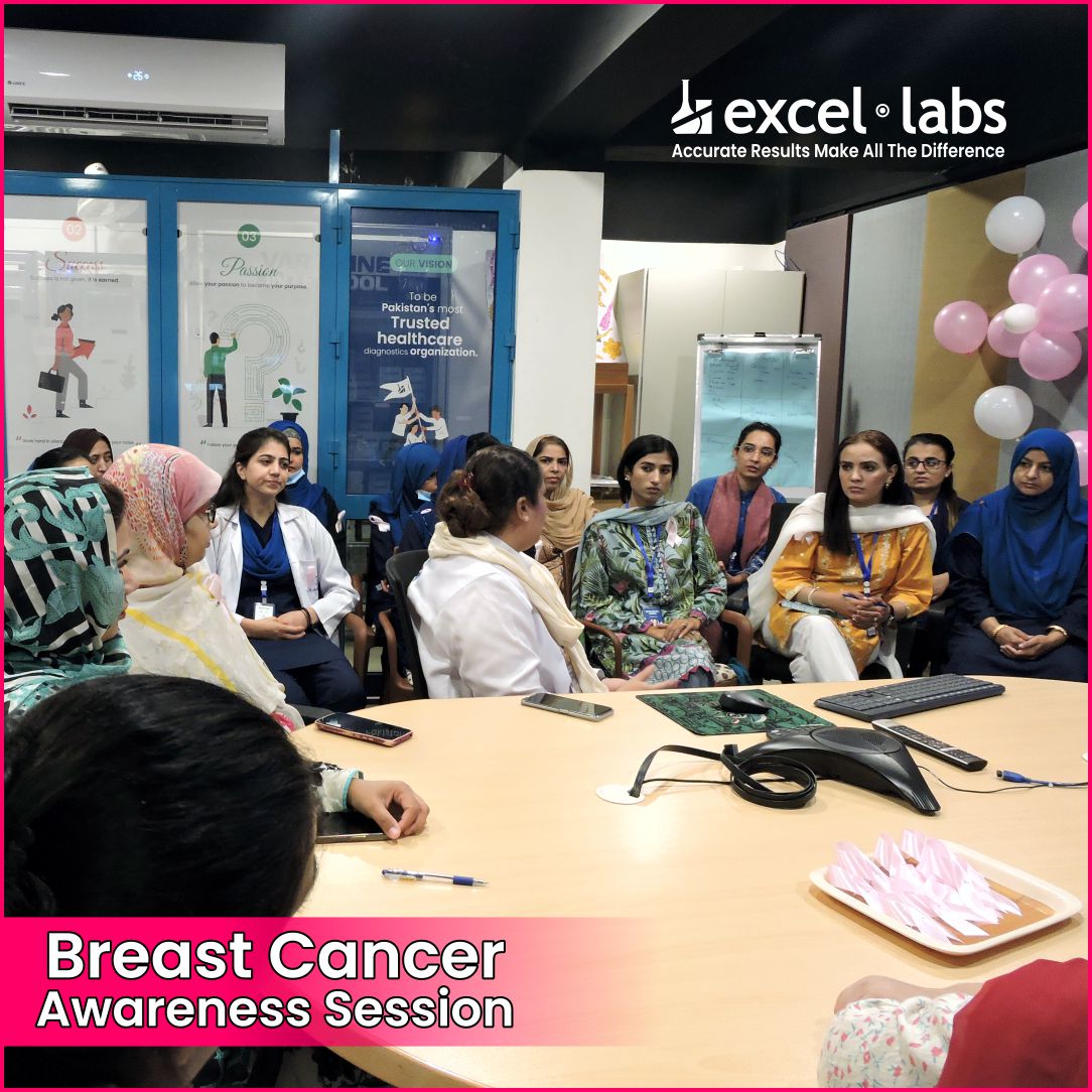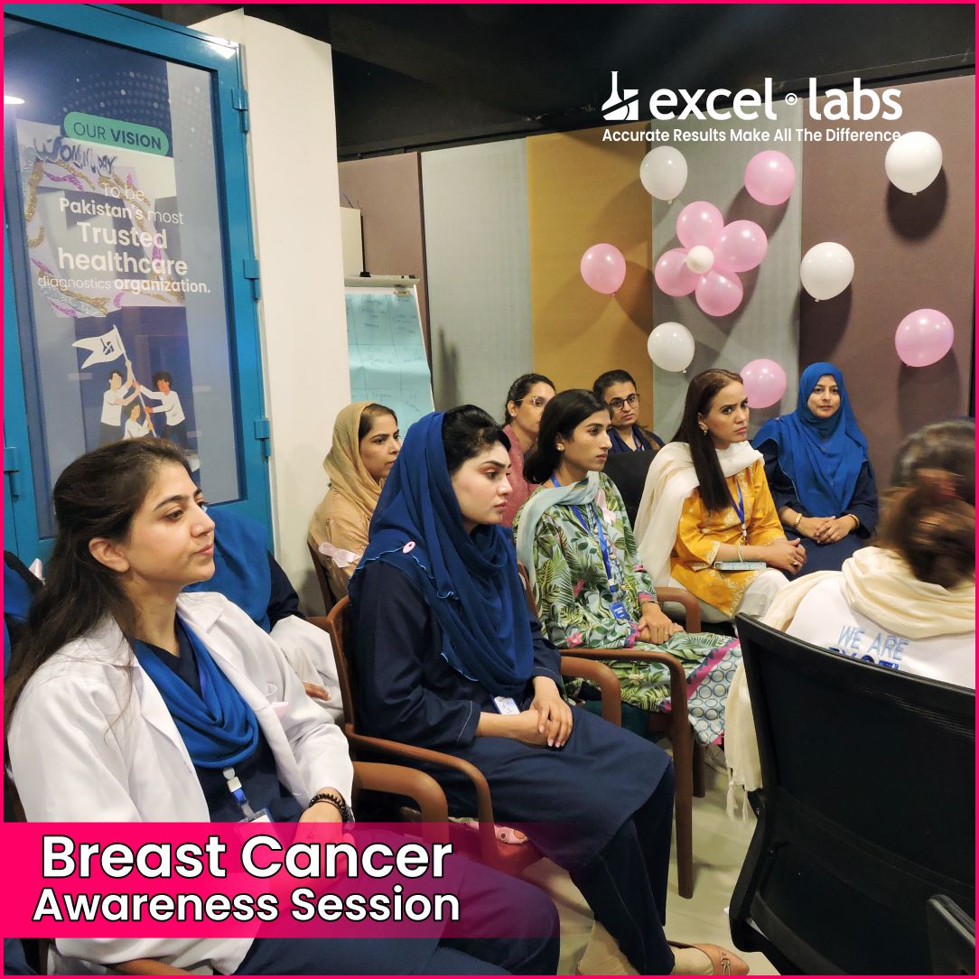 Excel Labs recently conducted an informative Breast Cancer Awareness session for our female employees, focusing on early detection, prevention, and the importance of regular screenings. Empowering women with the knowledge to take charge of their health is a priority, and this session highlighted key insights on self-exams, risk factors, and lifestyle choices for better well-being. Together, we’re fostering a proactive approach to health within our Excel Labs family.